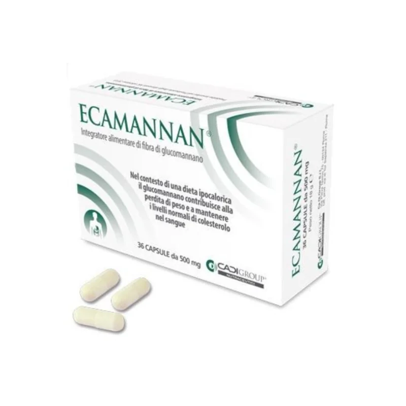 Ecamannan è un integratore di fibra di glucomannano. Nel contesto di una dieta ipocalorica il glucomannano contribuisce alla perdita di peso e a mantenere i livelli normali di colesterolo nel sangue. Senza glutine.