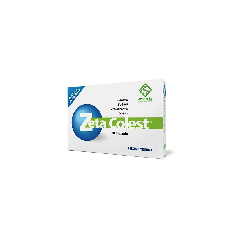 Zeta Colest Integratore per il Colesterolo è un integratore alimentare a base di riso rosso fermentato ed estratti di Berberis, cardo mariano e guggul. Berberis e cardo mariano contribuiscono alla normale funzione epatica. Il guggul contribuisce al normale metabolismo dei lipidi. Per il trattamento dell'ipercolesterolemia e dell'ipertrigliceridemia. Senza glutine e senza citrinina. Naturalmente privo di lattosio.