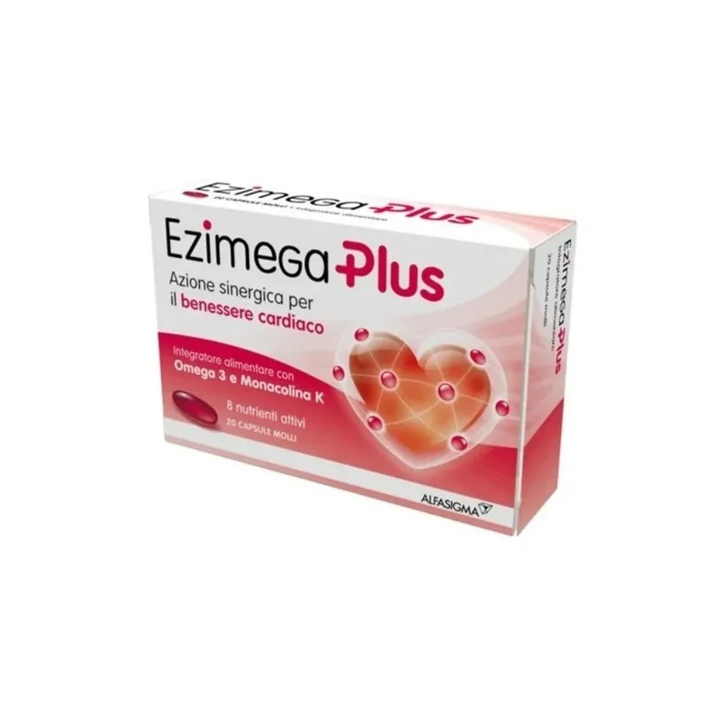Alfasigma Ezimega Plus benessere cardiovascolare è un integratore alimentare che garantisce il fabbisogno giornaliero di elementi essenziali per il regolare metabolismo energetico insieme ad una funzione antiossidante e depurativa dell'organismo.