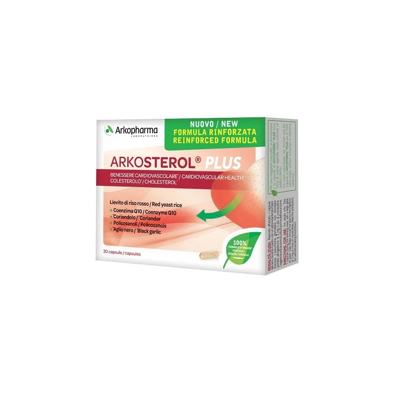 - ARKOSTEROL PLUS contiene inoltre coenzima Q10 e policosanoli per un’azione rinforzata.