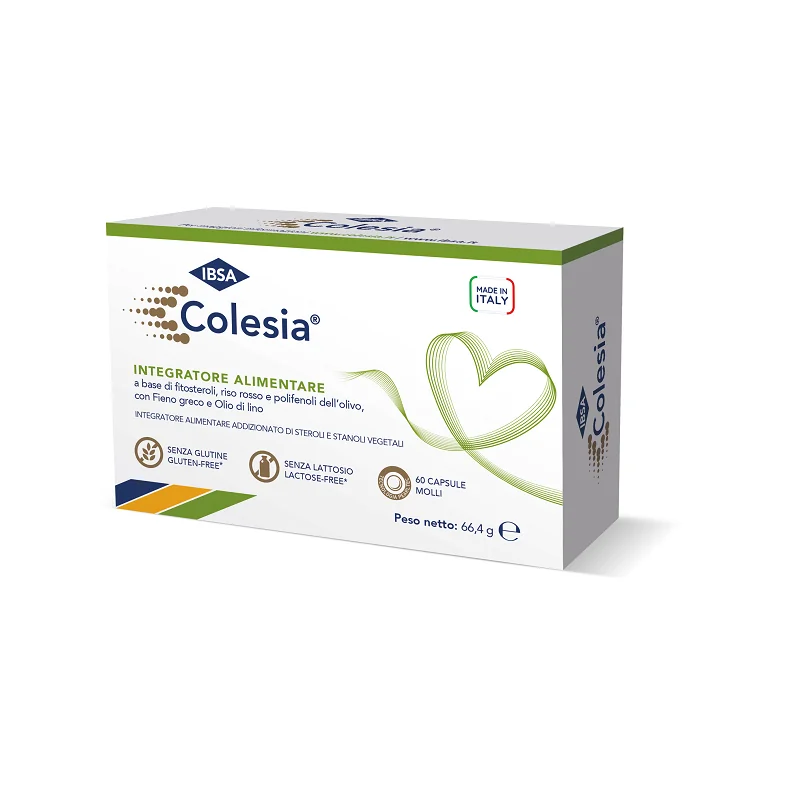Colesia Soft Gel è un integratore alimentare a base di fitosteroli, riso rosso e polifenoli dell’olivo, con fieno greco e olio di lino.