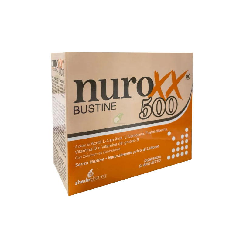 Nuroxx 500 in bustine è un complemento alimentare avanzato che combina Acetil-L-Carnitina, L-Carnosina, Fosfatidilserina, Vitamina D e un'ampia gamma di Vitamine del gruppo B, specificamente formulato per supportare il normale funzionamento del sistema nervoso e contribuire alla normale funzione psicologica, oltre a proteggere le cellule dallo stress ossidativo.