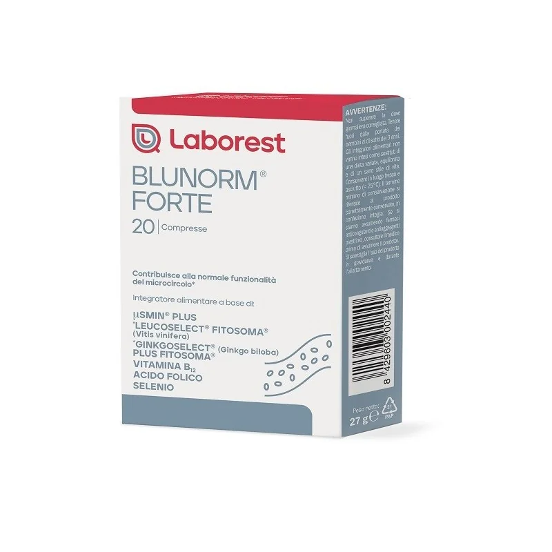 Blunorm forte integratore alimentare a base di diosmina, vitis vinifera, ginkgo biloba, selenio e vitamine B.