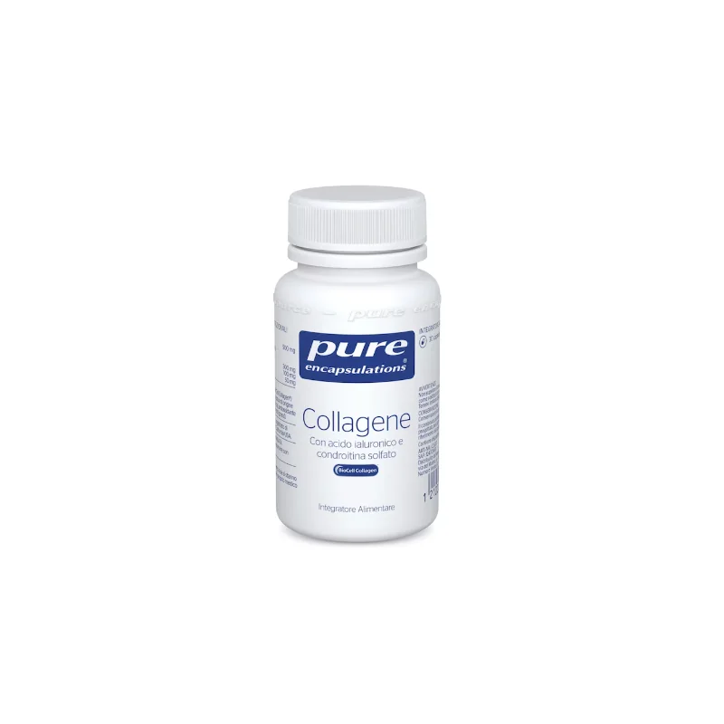 Integratore alimentare a base di collagene idrolizzato, vitamina C, resveratrolo e acido ialuronico.