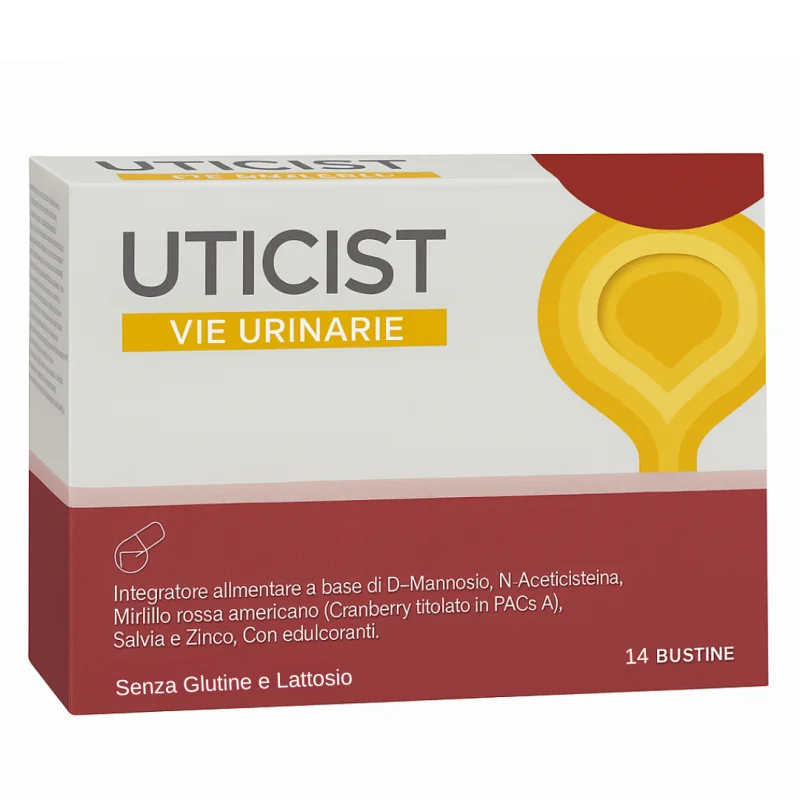 Istituto Ganassini Uticist integratore alimentare a base di D-mannosio, N-acetilcisteina, mirtillo rosso americano (cranberry), salvia e zinco utile per il benessere delle vie urinarie.