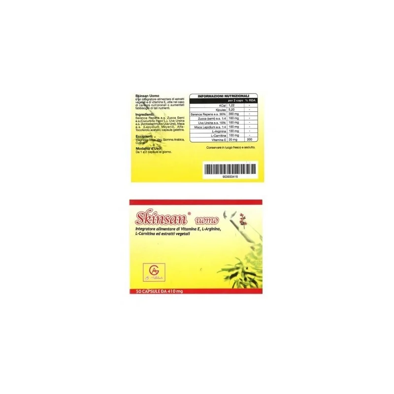 Skinsan Uomo è un integratore progettato per favorire il benessere maschile con estratti vegetali e Vitamina E e pensato per affrontare carenze nutrizionali e soddisfare aumentati fabbisogni di nutrienti essenziali.
