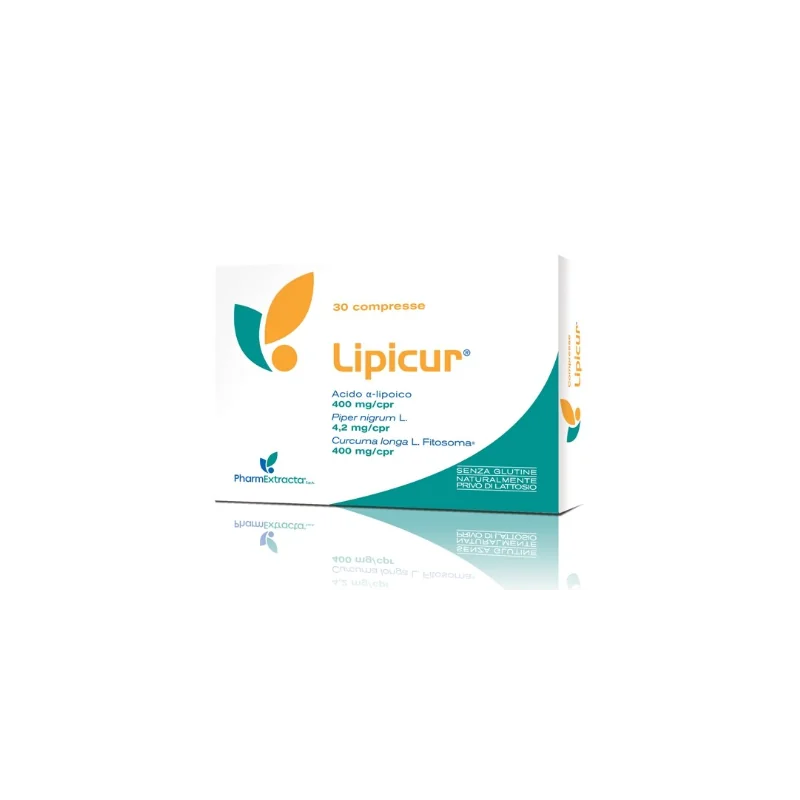 Lipicur Integratore Antinfiammatorio è un integratore alimentare a base di acido alfa-lipoico, curcumina fitosoma e piperina utile in caso di neuropatie, miopatie, osteoartriti e altre condizioni infiammatorie croniche. L'acido alfa-lipoico e il piper nigrum possiedono azione antiossidante. La curcumina da curcuma longa regola la funzionalità articolare e svolge azione antiossidante. Senza glutine e naturalmente privo di lattosio.