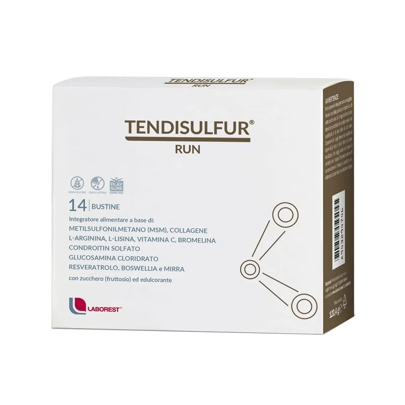 Si consiglia di assumere 2 bustine di Tendisulfur Run al giorno per almeno 2 settimane, seguite da un utilizzo prolungato di 1 bustina al giorno, secondo necessità.