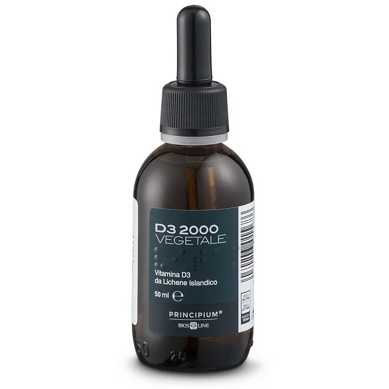 Bios Line Principium D3 2000 Integratore per Ossa è un prodotto alimentare di Vitamina D3, di origine vegetale, da Lichene islandico. Per adulti e bambini. La Vitamina D3 favorisce la salute di ossa e denti, contribuisce all'assorbimento di calcio e fosforo e una sua integrazione è consigliata, in particolare, a bambini e ragazzi in fase di crescita. La Vitamina D3, inoltre, contribuisce alla normale funzione del sistema immunitario. Adatto ai vegani. Senza glutine e lattosio.