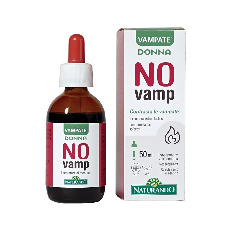 Donna No Vamp Gocce Integratore per la Menopausa è un prodotto alimentare a base di agnocasto, anice verde, luppolo e salvia. La salvia, l'agnocasto e il luppolo favoriscono il contrasto dei disturbi delle menopausa. Il luppolo inoltre contrasta le vampate di calore. Adatto ai vegani.