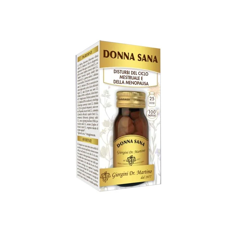 Dr. Giorgini Ser vis Donna Sana 100 pastiglie è un integratore alimentare per il benessere femminile formulato con estratti vegetali tradizionalmente utilizzati per supportare equilibrio del ciclo, comfort nei giorni premestruali e regolarità fisiologica. Utile nei periodi di maggiore sensibilità ormonale, quando si cercano pastiglie pratiche da assumere e una formula a base di piante.