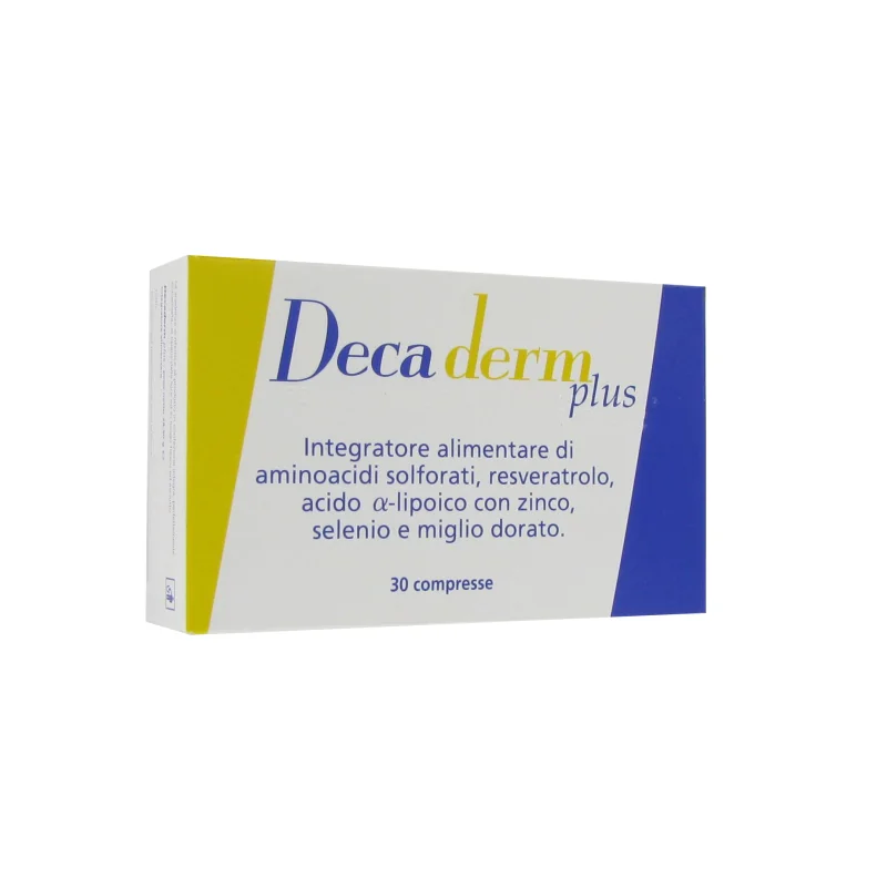 DecaDerm Plus è un integratore che si distingue per la sua formulazione mirata, pensata per favorire il benessere specifico del cuoio capelluto e degli annessi cutanei per benefici di un'integrazione mirata per la bellezza e la salute dei tuoi capelli e delle tue unghie.