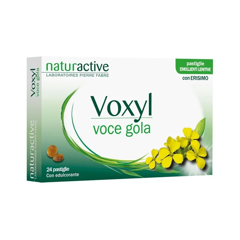 L'erisimo (sisymbrium officinale l., summitas c. floribus) contenuto nelle pastiglie Voxyl voce gola, è noto per le sue proprietà lenitive ed emollienti per la gola e per la sua azione sul tono della voce.