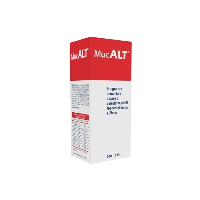 Acqua demineralizzata, frutto, miele d'acacia, N-acetilcisteina, zinco gluconato, echinacea purpurea [Echinacea purpurea (L.) Moench] parti aeree e.s. titolato 4% in polifenoli, altea (Althaea officinalis L.) radici e.s., drosera (Drosera rotundifolia L.) parti aeree e.s., piantaggine (Plantago lanceolata L.) foglie e.s., eleuterococco (Eleutherococcus senticosus Rupr. et Maxim.) radici e.s. titolato 1% in saponosidi, adatoda (Adhatoda vasica Nees) foglie e.s., malva (Malva silvestris L.) fiori e foglie e.s., aroma; conservanti: potassio sorbato, sodio benzoato; edulcorante: sucralosio. Contiene edulcorante.