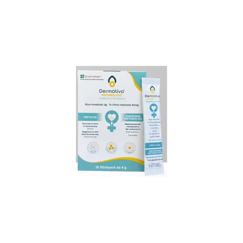 Integratore alimentare a base di myo-inositolo, D-chiro inositolo, Morus alba L., zinco, cannella, vitamina B6, B12, D3 e acido folico (Quatrefolic) con edulcorante. L’acido folico, le vitamine B6 e B12 contribuiscono al normale metabolismo dell'omocisteina. Lo zinco contribuisce alla normale fertilità e riproduzione. La vitamina D è coinvolta nel processo di divisione cellulare.