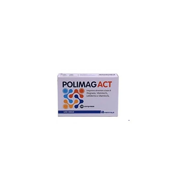 Polimag Actè un integratore a base di vitamine e sali minerali: Magnesio, Vitamina D3, Lattoferrina, Vitamina B6 la cui assunzione riporta i valori di tali nutrienti a quelli fisiologici, riduce il senso di stanchezza e affaticamento, stimola il metabolismo energetico e quello immunitario.