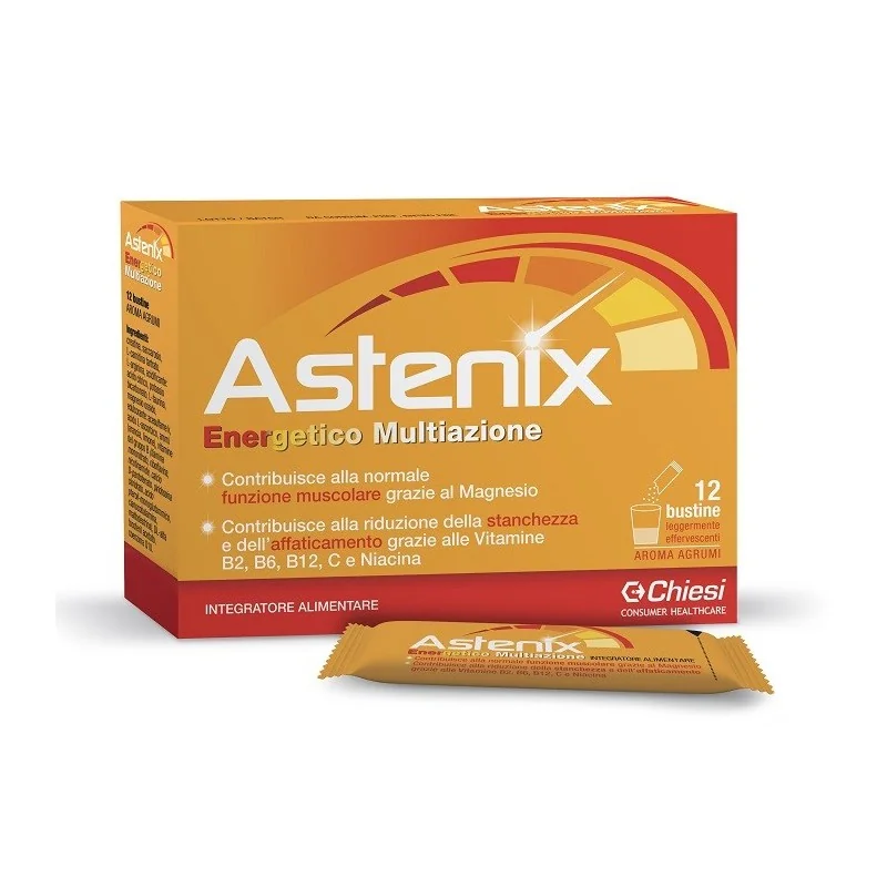 Astenix è un integratore alimentare ad attività proenergetica costituito da creatina, carnitina, arginina, taurina, vitamine del gruppo B, potassio, magnesio, vitamine C ed E, coenzima Q10.