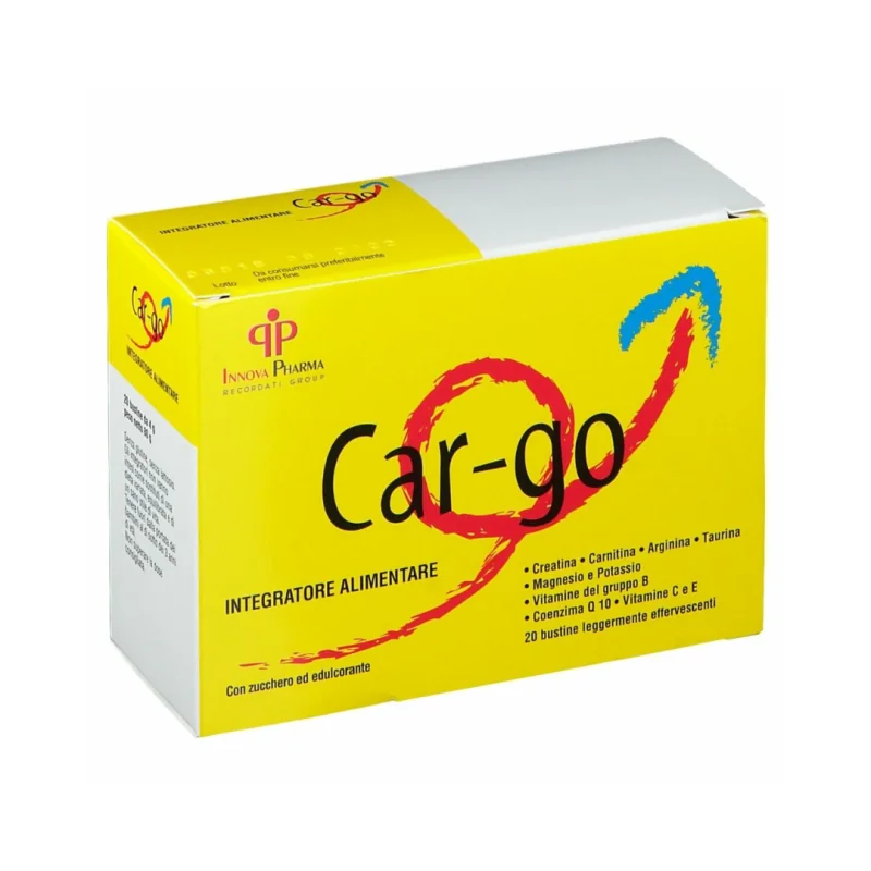 Innova Pharma Car-go integratore di creatina è un prodotto a base di creatina, carnitina, arginina, taurina, vitamine del gruppo B, potassio, magnesio, vitamine C ed E, coenzima Q10. I nutrienti che lo costituiscono, contribuiscono: