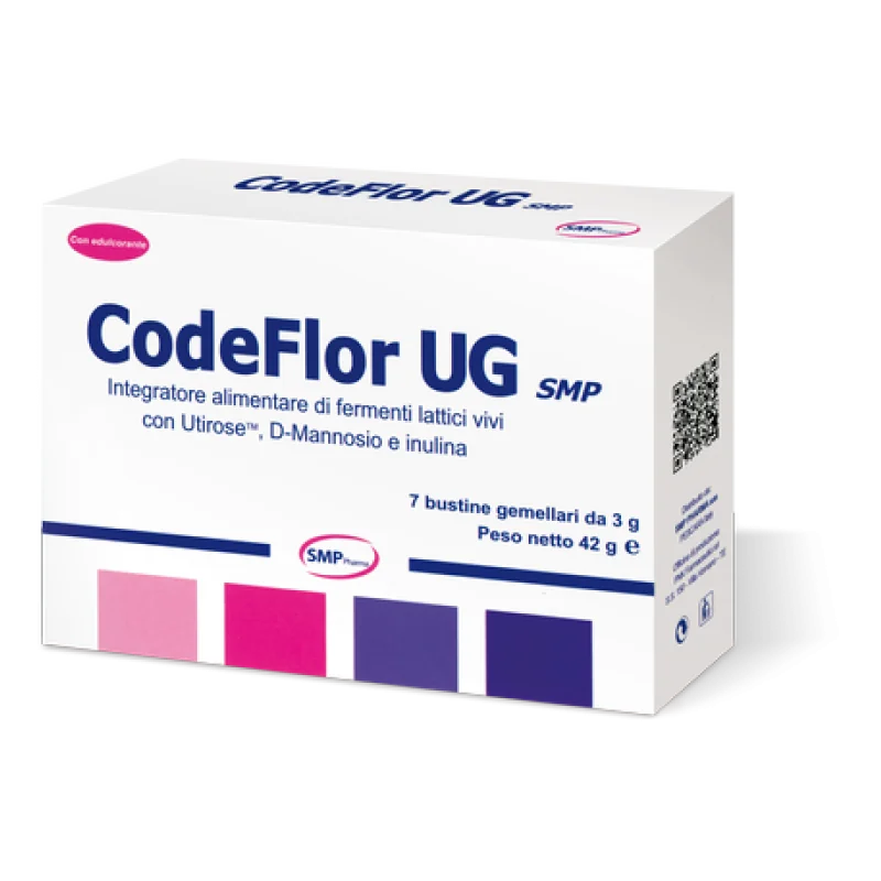 Codeflor Ug SMP è un integratore a base di fermenti lattici e fibre che ripristinano l'equilibrio alla flora batterica e favoriscono il benessere delle vie urinarie