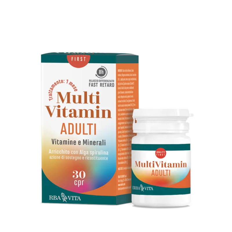 Integratore alimentare a base di una combinazione di vitamine liposolubili e idrosolubili, minerali specifici tra cui ferro e magnesio, arricchito con Alga spirulina per una rapida azione ricostituente e di sostegno di tutto l'organismo.
