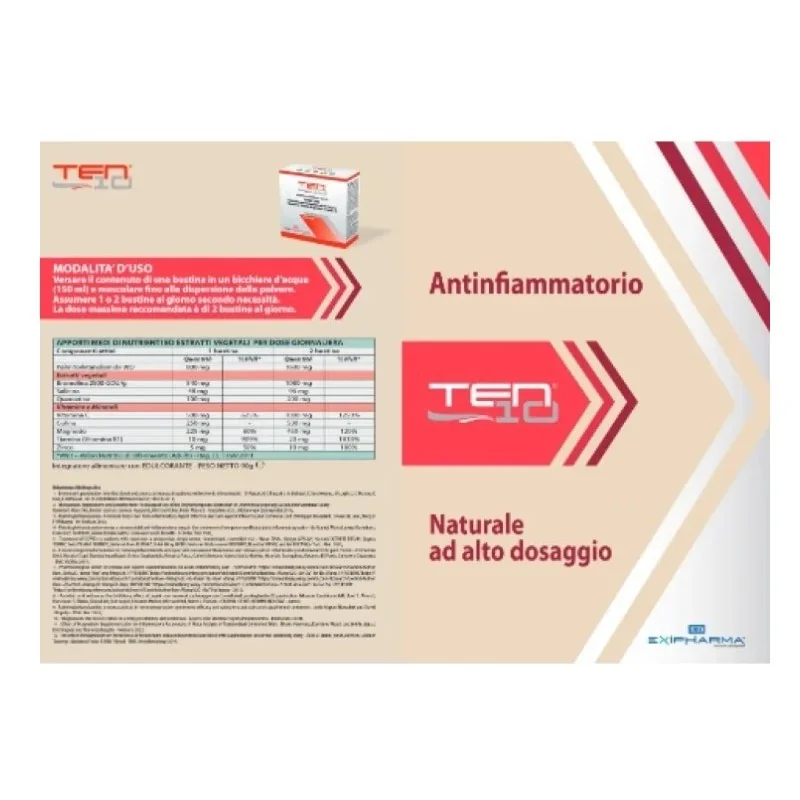 Maltodestrine, sali di magnesio dell'acido citrico, RePEA (WD), palmitoiletanolamide (PEA) (palmitoiletanolamide; amulsionante: lecitine da girasole), colina bitartrato, Vitamina C (acido L-ascorbico), bromelina 2.500 GDU/g da Ananas comosus (L.) Merr. polvere del gambo, salice (Salix alba L., Salix purpurea L.) e.s. della corteccia tit. al 30% in salicina, quercetina da Sophora japonica L. (Styphnolobium japonicum) polvere dei fiori, gluconato di zinco, tiamina o vitamina B1 (cloridrato di tiamina); agente antiagglomerante: biossido di silicio; aroma; edulcorante: sucralosio; emulsionante: esteri di saccarosio degli acidi grassi.