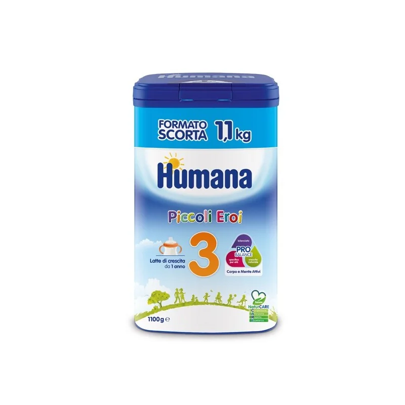 Humana 3 ha una formula bilanciata con un equilibrato contenuto di proteine. È formulato per fornire al bambino i nutrienti per crescere secondo natura, nelle giuste quantità in base all'età. Accompagna il ritmo naturale della crescita del bambino senza accelerarlo o rallentarlo.