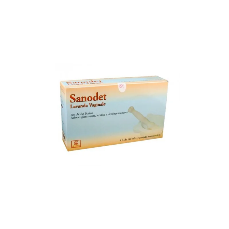 Lavanda vaginale a base di principi che rispettano la fisiologia delicata della mucosa vaginale. Il prodotto deterge la mucosa lasciando una piacevole sensazione di freschezza e di pulizia. L'attività igienica cosmetica di Sanodet sviluppa un'azione lenitiva e decongestionante anche in presenza di patologie vaginali e in associazione al trattamento specifico. L'uso prolungato di Sanodet è ben tollerato dalla mucosa vaginale.