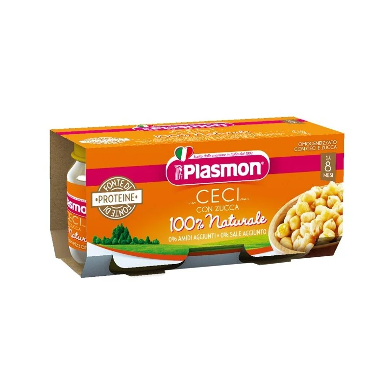 L'omogeneizzato di ceci è ideale per far assaggiare al tuo bambino i legumi e variare il gusto della pappa. L'omogeneizzato ceci con zucca plasmon consumato in combinazione con i cereali rappresenta una fonte di proteine alternativa alla carne, al pesce e al formaggio, nell'ambito di una dieta varia.