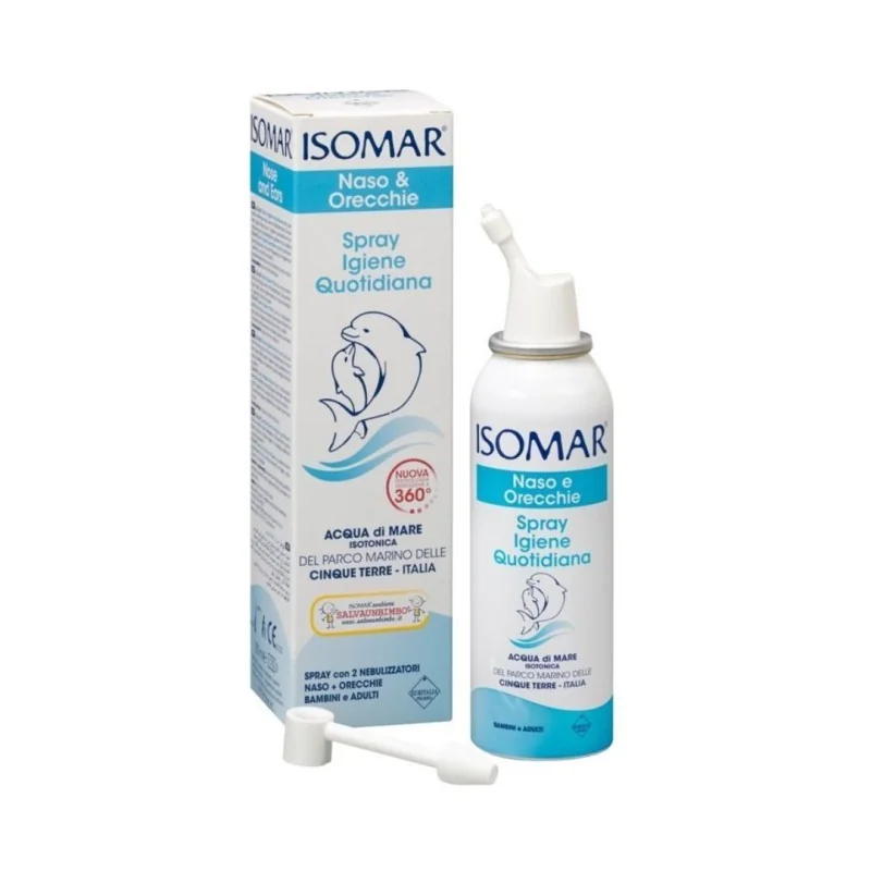 Isomar Soluzione Isotonica Spray Naso e Orecchie è una soluzione isotonica e stabilizzata di acqua di mare del Parco Marino delle Cinque Terre per la detersione nasale e cocleare quotidiana. Libera il naso in caso di raffreddori, sinusiti, riniti, allergie respiratorie in genere anche da polline. La formulazione lo rende ideale anche per la pulizia ed il lavaggio dell'orecchio. Previene la formazione dei tappi di cerume e il ristagno di particelle indesiderate all'origine di possibili disturbi uditivi. Aiuta a mantenere terso il meato uditivo nei soggetti portatori di apparecchi acustici (la caratteristica della nebulizzazione impedisce qualsiasi sovrapressione alla membrana timpanica).