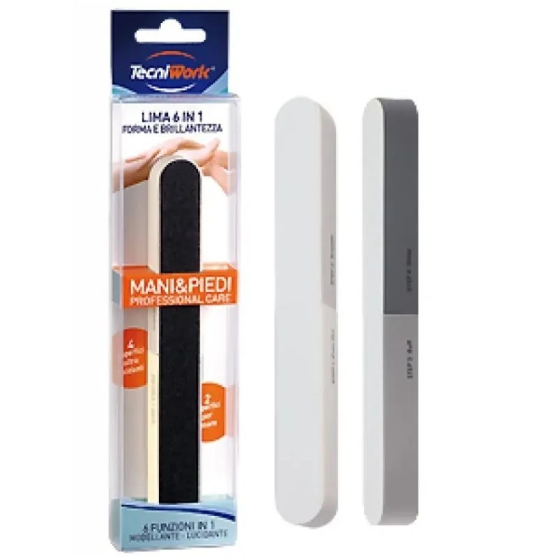 Lima modellante e lucidante che, grazie alle 6 diverse superfici, è perfetta per ridurre la lunghezza delle unghie (lima nera), modellarne la forma (lima bianca) e lucidare la superficie con le 4 facce di grana diversa da usare in successione.