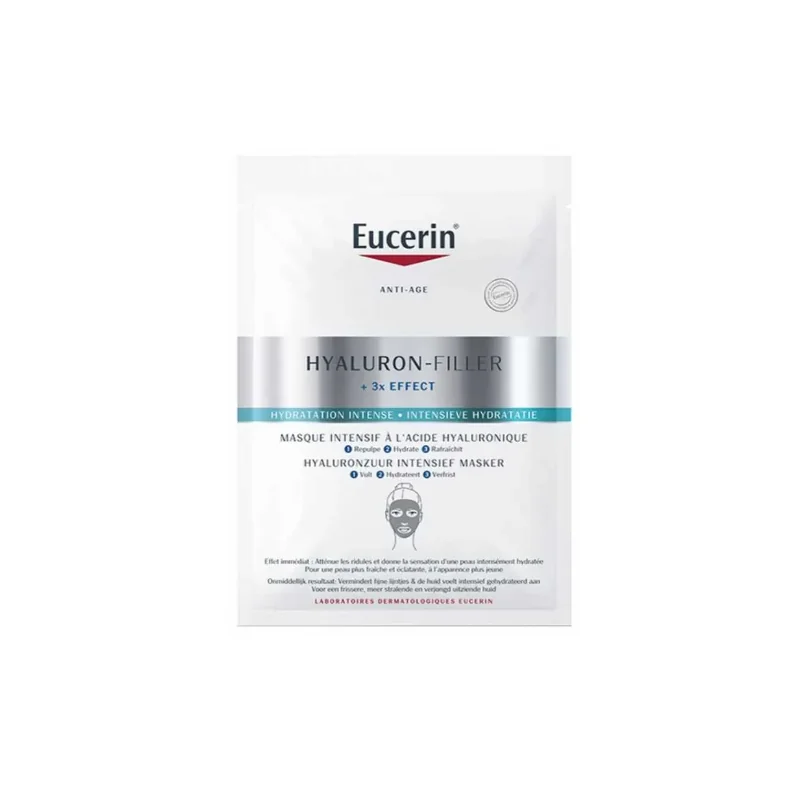 Eucerin Hyaluron filler maschera viso anti-age per un'idratazione immediata. Le linee sottili si riducono e la pelle risulta idratata, più fresca, più luminosa e ringiovanita. Hyaluron Intensive Mask contiene: