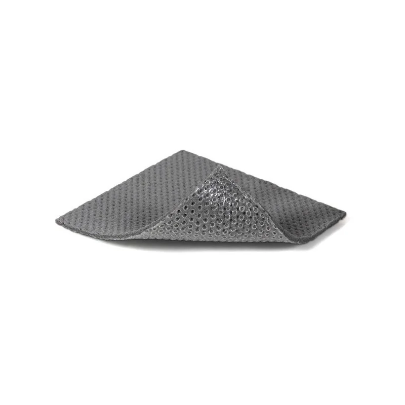 Tampone assorbente e flessibile in schiuma di poliuretano sottile a celle aperte ad assorbimento verticale di colore grigio contenente solfato d’argento e carbone attivo.