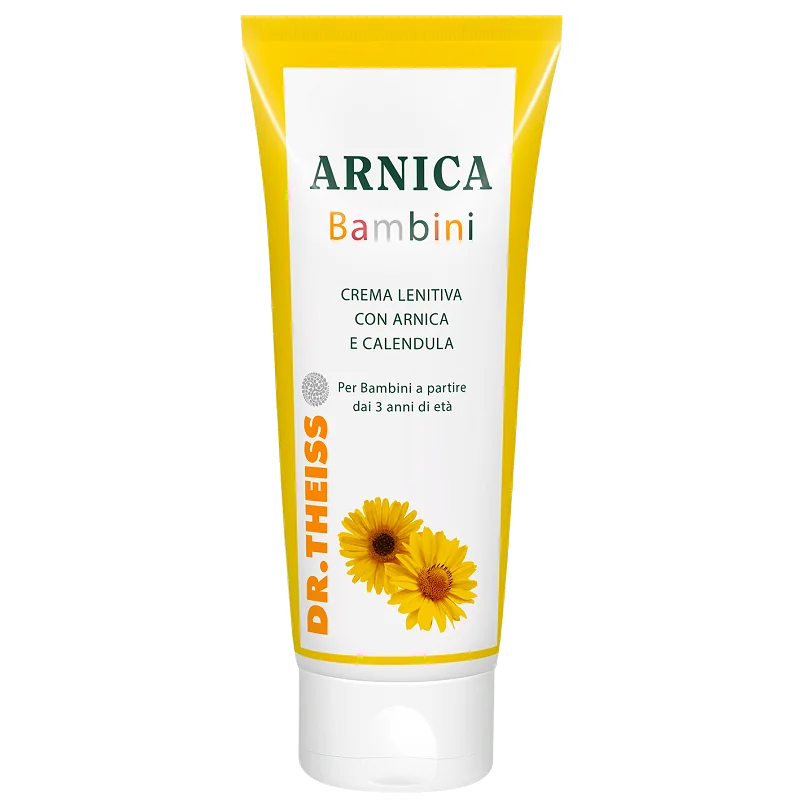 Crema arnica per la pelle del corpo particolarmente delicata dei bambini. La particolare combinazione di arnica, che lenisce la sensazione di fastidio e dona immediato sollievo, e calendula, da sempre conosciuta e utilizzata soprattutto per uso esterno, per la sua attività lenitiva, disarrossante e favorente i processi di rigenerazione.