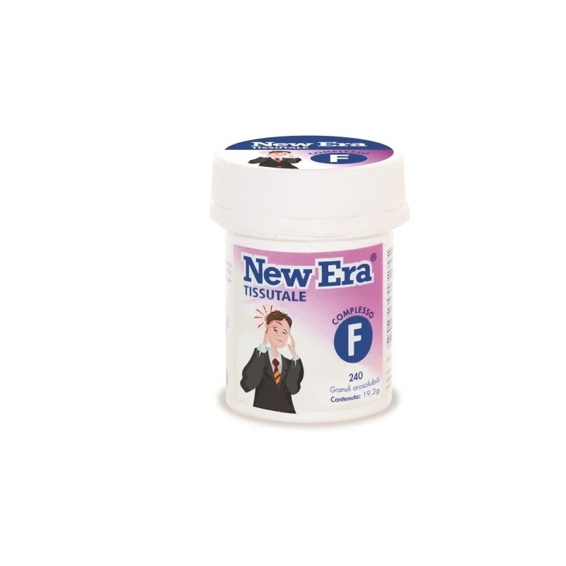 Integratore alimentare a base di Biotina e di 12 sali inorganici in tracce, tra cui Calcio, Ferro, Potassio, Magnesio.I New Era vengono diluiti in lattosio, macinati tramite 6 passaggi di triturazione, essiccati. Sono validi supporti per raffreddamento, stanchezza e affaticamento, tensioni, pelle e capelli, pancia e dentizione, stomaco. Immediata solubilità.