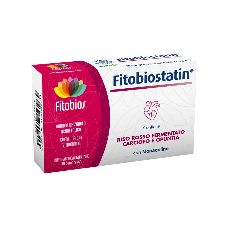 Carciofo (Cynara scolymus L.) foglie e.s. tit. 5% acido clorogenico, riso rosso fermentato (Oryza sativa L.) fermentato con Monascus purpureus semi polvere tit. 1,5% monacoline; agente di riempimento: cellulosa microcristallina; opuntia (Opuntia ficus indica Miller) foglie giovani polvere, vitamina E, coenzima Q10, gamma orizanolo; agenti antiagglomeranti: magnesio stearato vegetale, biossido di silicio; acido folico.