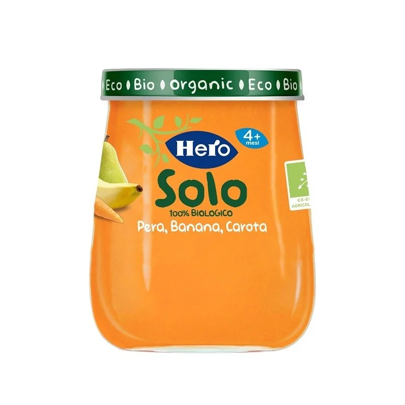 Hero Solo Pera, Banana e Carota è una ricetta semplice preparata con solo frutta, nata per accompagnare i più piccoli alla scoperta graduale di nuovi sapori assecondando il naturale sviluppo della loro prima infanzia.