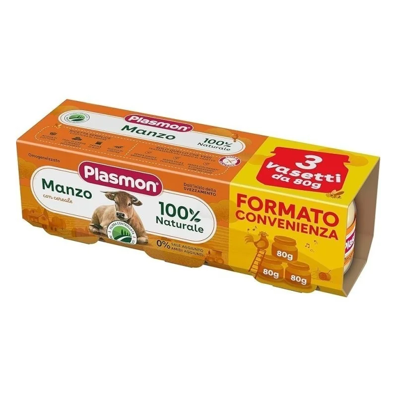 Plasmon Omogeneizzato Manzo E Cereale 3 Pezzi Da 80 G