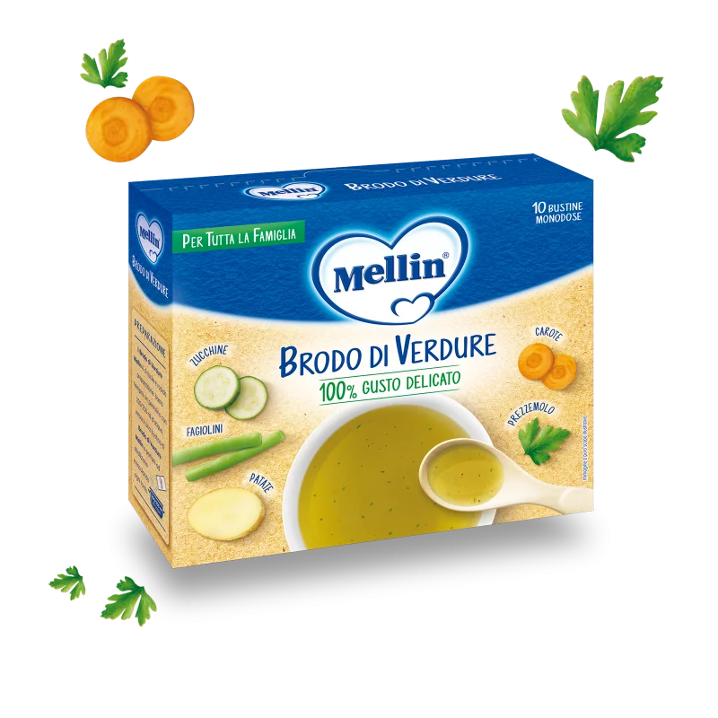 Riempire un pentolino con 220/250 ml di acqua, versarvi una bustina di Brodo di Verdure Mellin e portare ad ebollizione, mescolando di tanto in tanto.