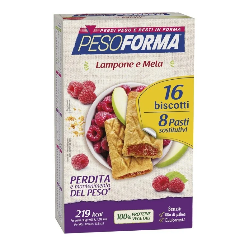 Nutrition & Sante' Italia Pesoforma Biscotti Lampone E Mela 16 Biscotti X 33g 8 Pasti Sostitutivi