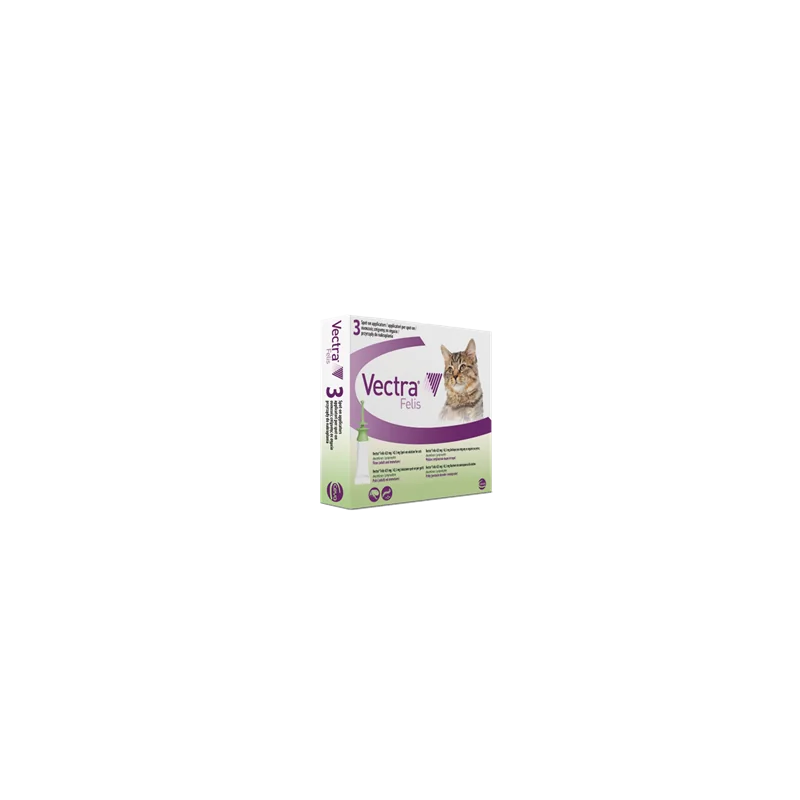 Ceva Salute Animale Vectra Felis Spot-On per Gatti è un farmaco veterinario per il proprio gatto capace di contrastare le infestazioni parassitarie di pulci. Si raccomanda di applicare il prodotto a tutti i gatti della casa per massimizzarne l'efficacia preventiva. Il farmaco appartiene alla categoria degli ectoparassicidi per uso topico.