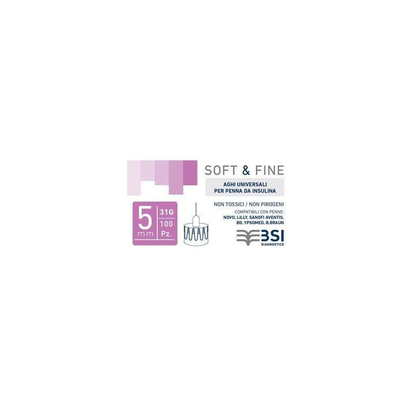 Biochemical System Intern. Ago Per Penna Da Insulina Soft&fine 31 Gauge 5 Mm 100 Pezzi