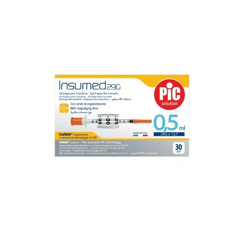 Dettagli Pikdare Siringa Per Insulina Pic Insumed 0,5 Ml 100 Ui Ago Gauge 29 Lunghezza 12,7 Mm Senza Spazio Morto 3 Sacchetti Da 10 Pezzi