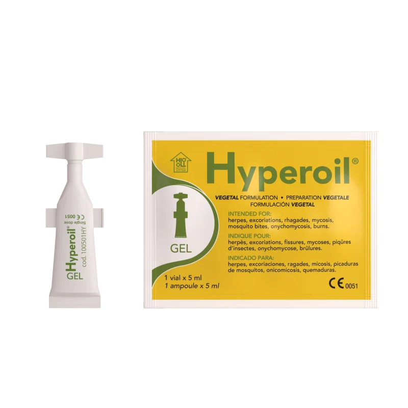 Pulire, se necessario, la ferita con acqua o fisiologica, applicare una piccolissima quantità di Hyperoil e massaggiare fino a completo assorbimento; coprire, se necessario, la ferita con cerotto traspirante per proteggere la lesione. Ripetere la medicazione quotidianamente fino a completo risanamento.