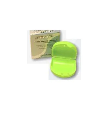 contenitore per apparecchi ortodontici o per protesi in polipropilene atossico. Fluorescente e realizzato con materiale altamente resistente.