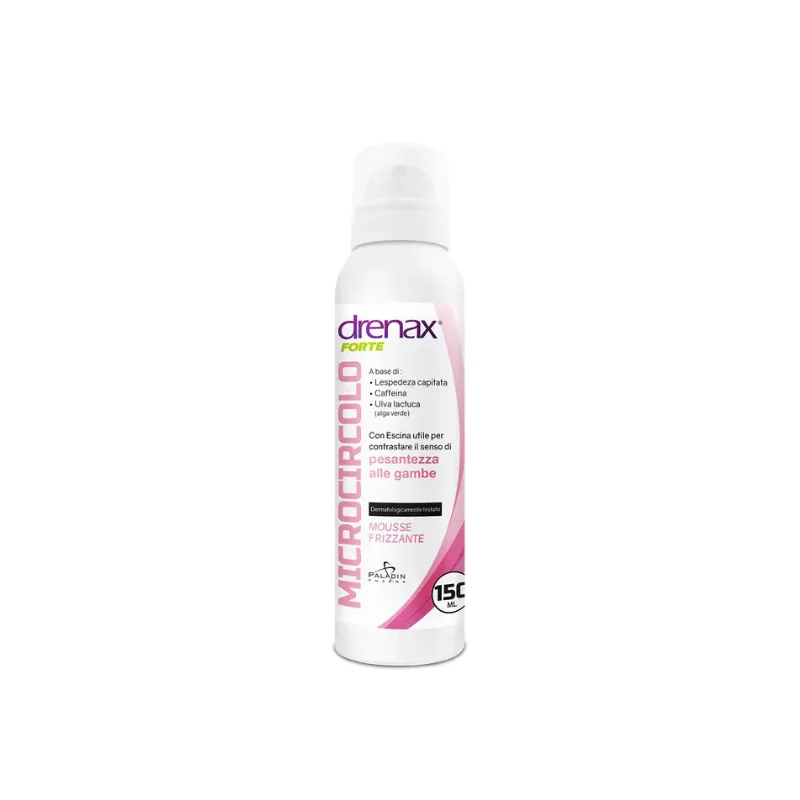 Drenax Forte Microcircolo Mousse Frizzante è un preparato cosmetico a base di Lespedeza capitata, Caffeina ed Ulva lactuca (alga verde) realizzato in una piacevole mousse che a contatto con la pelle esercita un effetto “frizzante”, veicolando gli ingredienti del prodotto. In particolare l’Escina è nota per essere utile nel coadiuvare il fisiologico microcircolo superficiale e contrastare il senso di pesantezza alle gambe.