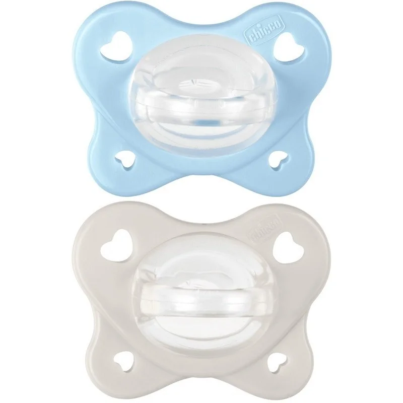 Chicco succhietto azzurro/neutro 2-6M ideale per supportare la crescita della muscolatura orale.