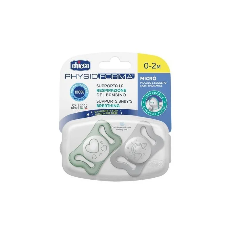 Chicco Succhietto Micro Lumi Silicone 0-2m 2 Pezzi