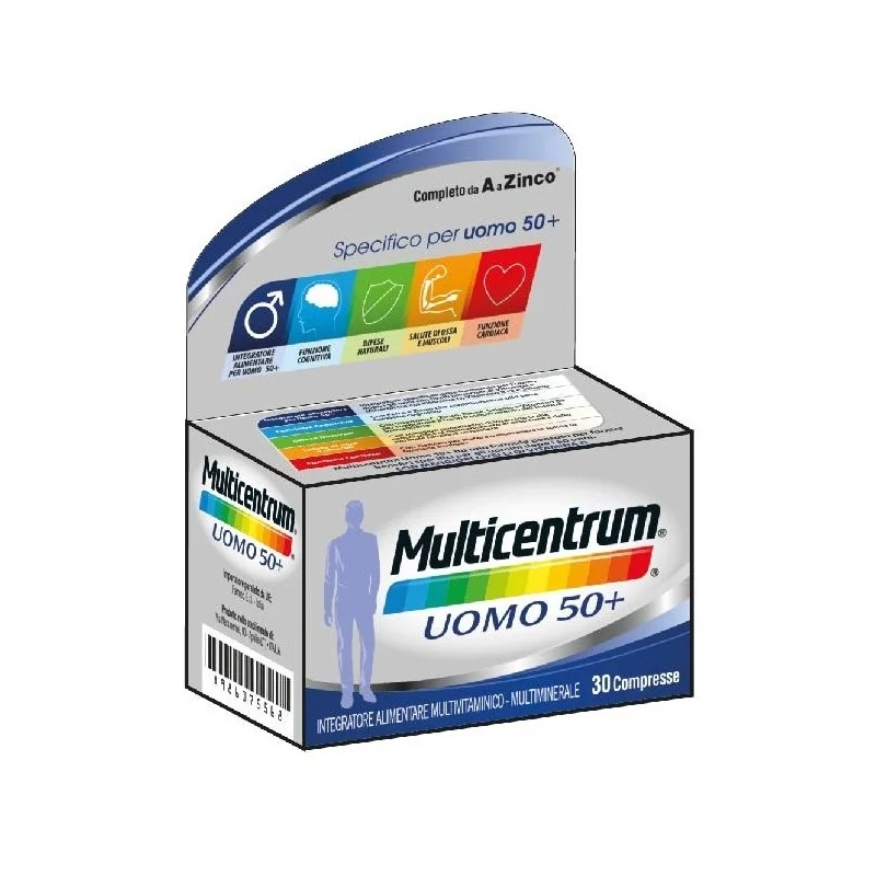 Multicentrum Uomo 50+ è la gamma di integratori multivitaminici formulati per soddisfare i fabbisogni nutrizionali degli uomini dopo i 50 anni.