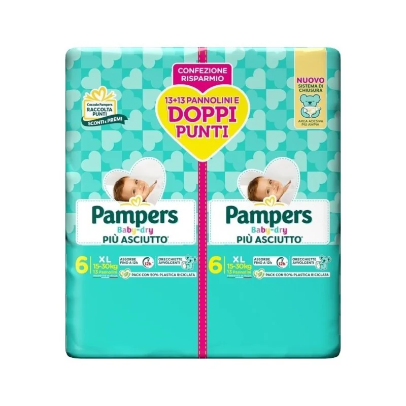 Pampers Baby Dry Pannolini XL 15-30Kg Doppia Confezione - 26 pannolini