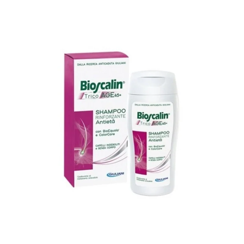0Bioscalin Tricoage Shampoo Rinforzante aiuta a rinforzare e a dare lucentezza a capelli fragili e assottigliati dal tempo.